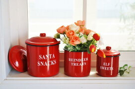 【特典付き●】 アンティーク風 ボーダー レッド キャニスター セット 3点セット ホーロー保存容器 キッチン用品 食器 調理器具 琺瑯 ほうろう キッチンストッカー LM-17