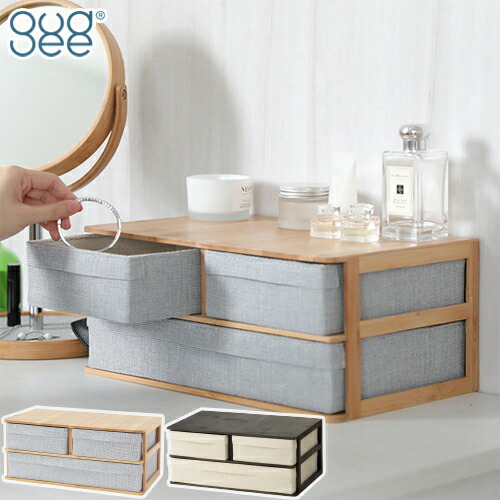 デスクにコンパクトに置ける竹×布のおしゃれな2段キャビネット🗄️ブルーとナチュラルの2色から選べる♪