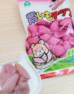 🍠サンコー 紫いもチップ 国内産の馬鈴薯澱粉、さつまいも、紫いもが主原料の生地を、植物油でフライした、さっぱり味のスナック菓子です。 原材料がシンプルで、ほんのりとしたさつま芋の甘みが美味しいスナックです😋 50g入り🧺