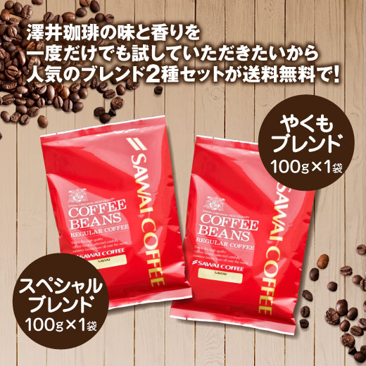 焙煎したて コーヒー豆 コーヒー粉 1000円ポッキリ 送料無料 メール便 澤井珈琲 少量お試しセット 【飲み比べ2種のレギュラーコーヒーセット やくもブレンド スペシャルブレンド】 約20杯 1000円プレゼント 【RD】 【TS】