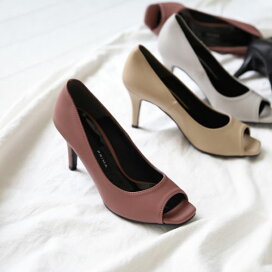【半額セール 16日9:59まで】日本製 オープントゥ パンプス 痛くない 柔らかい レディース 歩きやすい 走れる 履きやすい 幅広 黒 冠婚葬祭 結婚式 オフィス 仕事用 シューファンタジー 靴 送料無料 ◇ 25SS 春夏新作 ◇ シンプル オープントゥパンプス