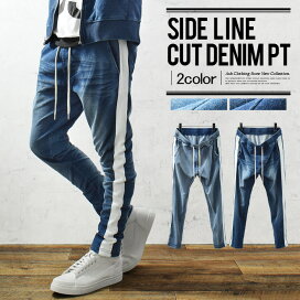 デニムプリント ジャージ ニット インディゴ ブリーチ M L LL ストレッチパンツ やわらか 肌触りの良い素材 リニューアル【送料無料】