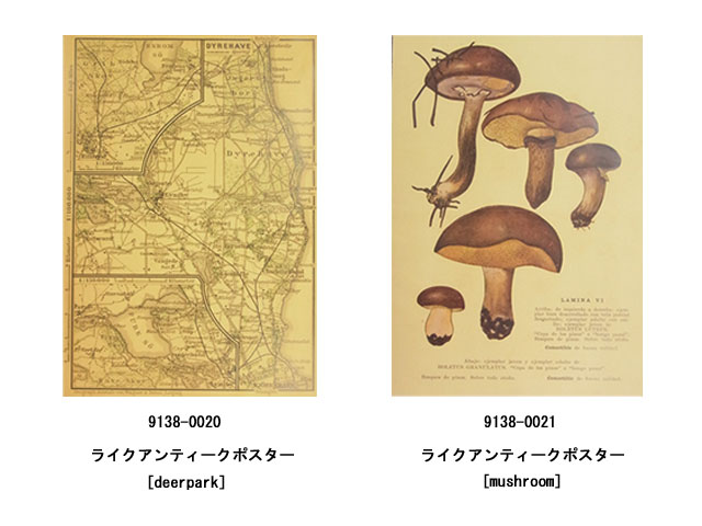 【500WORKS.】ライクアンティークポスター(deerpark/mushroom)【アンティーク雑貨】