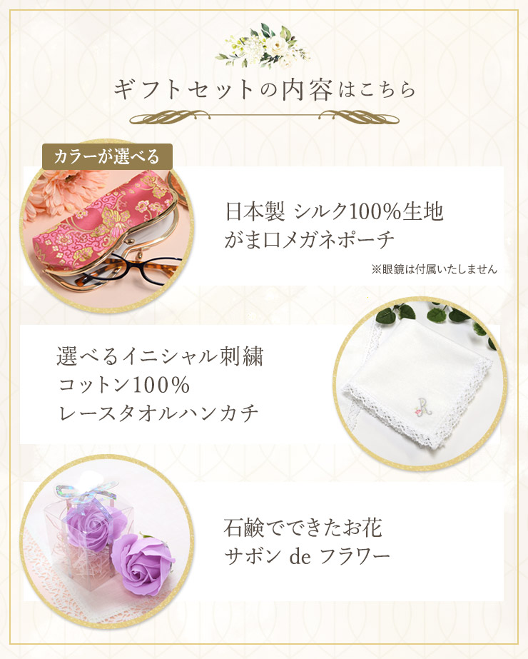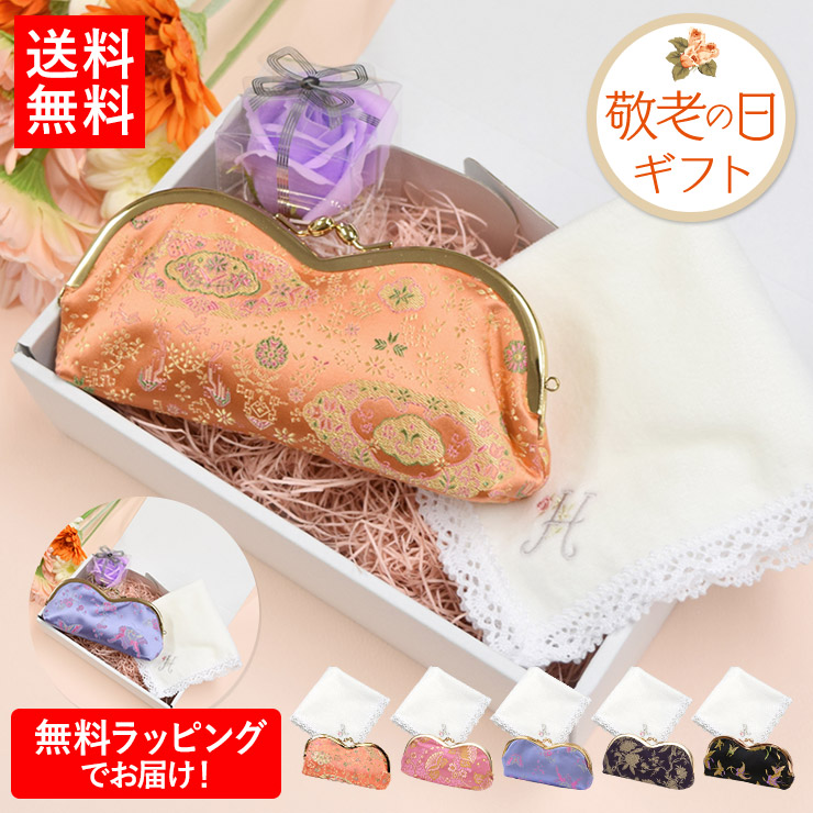 敬老の日 ギフトセット メガネポーチ ハンカチ イニシャル【メガネポーチ&ハンカチ&サボンset】 メガネケース シルク タオルハンカチ メガネ小物 メガネ めがね がま口 かわいい 上品 おしゃれ 京都 ギフト ギフトセット 贈り物 プレゼント