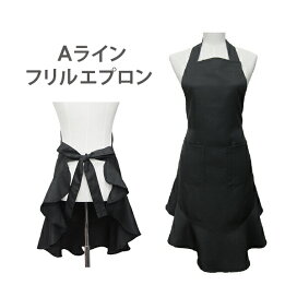 エプロン リボン フリル 首掛け 身丈90×身幅120cm ユニフォーム ブラック 黒 おしゃれ ワークエプロン 作業用エプロン 業務用エプロン ネイルサロン マツエク エステ
