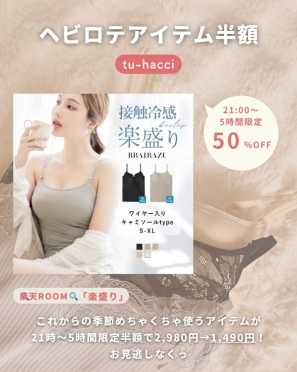 「体感-2℃」接触冷感(旧型)《楽盛りブラトップ》ワイヤー入り ブラトップ ブラキャミ キャミソール カップ付き 冷感 インナー Vネック Uネック カップ付きキャミソール【tu-hacci】