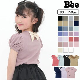 バックリボンTシャツ購入! リボンの生地やつくりがしっかりしていて、 へたらない、フォルムが綺麗。 ワンサイズ上の購入がオススメです♡ 約90cmの娘に110サイズ購入で、 着丈はお尻が半分隠れるくらいかな。