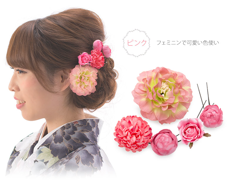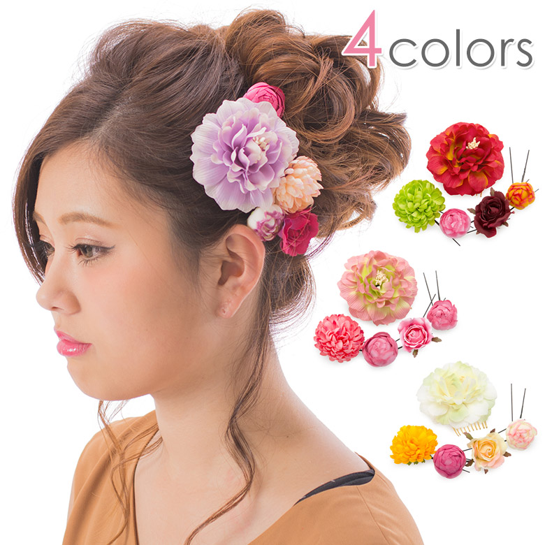 髪飾り 5点セット Uピン 卒業式 成人式 着物 袴 振袖 花に蕾 七五三 浴衣 3歳 5歳 7歳 三歳 五歳 七歳 3才 5才 7才 5点 ヘアアクセサリー かみかざり 結婚式 紫 白 赤 ピンク かわいい おしゃれ