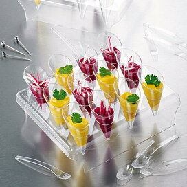 パーティーを楽しくお洒落に演出する、一口サイズのアミューズスプーンお洒落なシェイプながらも主張しすぎず、ガラスの食器のよ うに破損の心配も少ないので、おもてなしをする側もされる側も安心してパーティを楽しめます。ブラック 12個入り