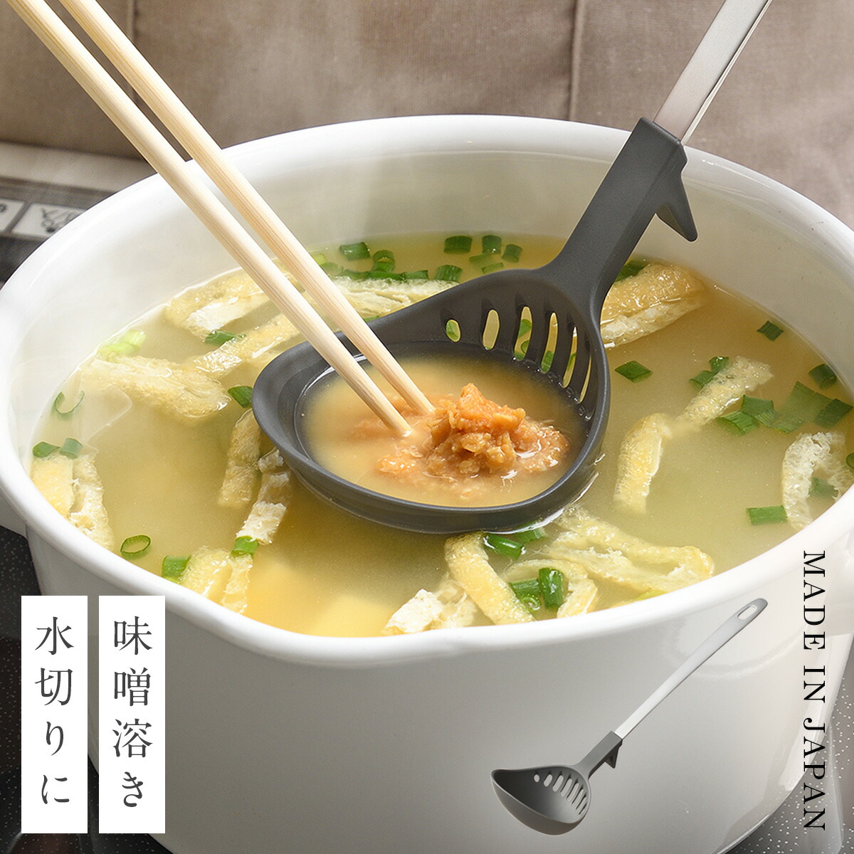 ザルいらずでラクすぎる…!🤎 傾けるだけで水切りできる『水切りおたま』 ブロッコリーやウインナーの湯切りはもちろん、味噌汁の味噌溶きにも使える万能アイテム🍲 包み込むような形でお味噌が逃げにくく、ほどよくお湯が入るから味噌溶きもスムーズ さらにスタンド付きで置き場にも困らない優秀デザイン👏 お鍋やシチューの具をすくうのにもぴったりで、これ一本で食卓の“ちょっとめんどくさい”が解決します こんな方におすすめ ✮ ザルを出すのが面倒な人 ✮ 味噌汁づくりをもっとラクにしたい人 ✮ お鍋や水炊きが好きな人 𓈒 𓏸 𓐍 𓂃 𓈒𓏸 𓂃◌𓈒𓐍 𓈒𓈒 𓏸 𓐍 𓂃 𓈒𓏸 𓂃◌