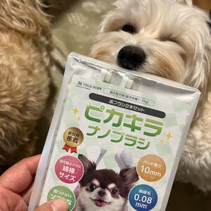 愛犬の歯磨き用にナノブラシを購入しましたが、これは本当に当たりでした🐶 ヘッドがかなりコンパクトなので、奥歯までスッと届きます。今までの歯ブラシは嫌がっていたのに、これは抵抗がかなり少なくスムーズ!歯磨きのハードルが一気に下がりました🙆♀️ 超極細のナノブラシ毛が、歯と歯ぐきの境目や磨きにくい犬歯の横にしっかりフィット。ゴシゴシしなくても優しく当てるだけで磨けるので安心感があります。小型犬やお口が小さい子にも使いやすいと思います🙆♀️ 「奥歯がうまく磨けない」「毎回バトルになる」という方に本気でおすすめ。 消耗品なのでリピート確定です!お手頃なのでまとめ買いも検討中です!