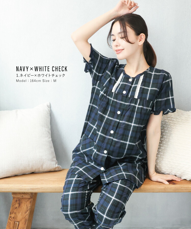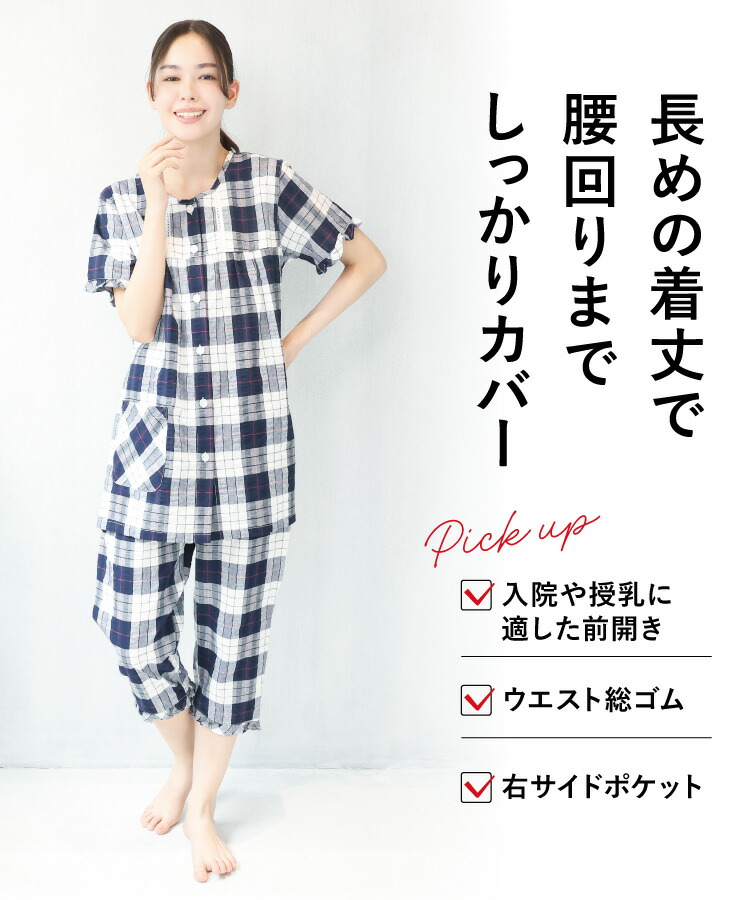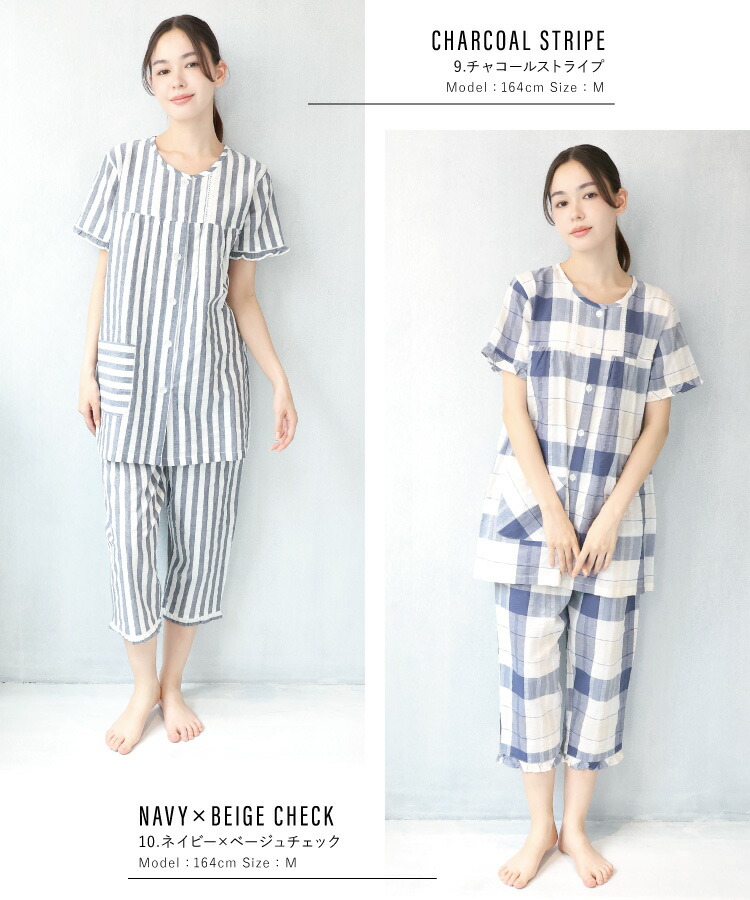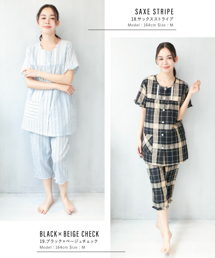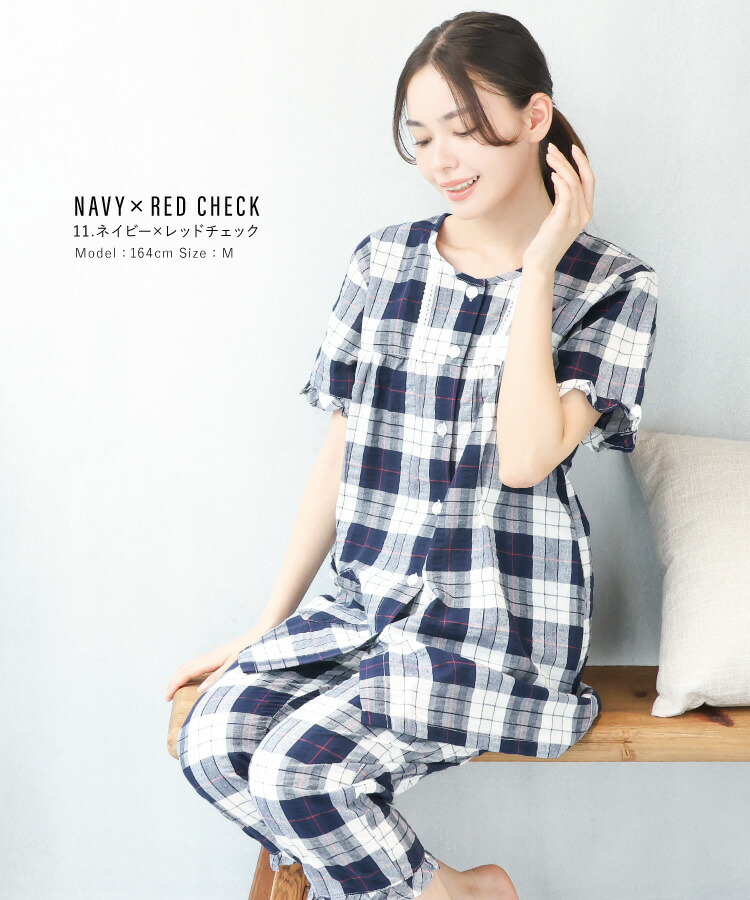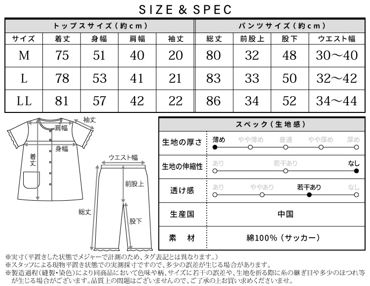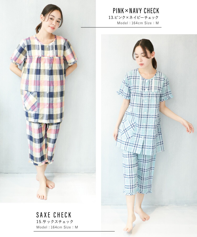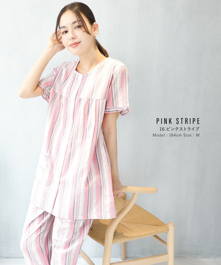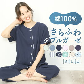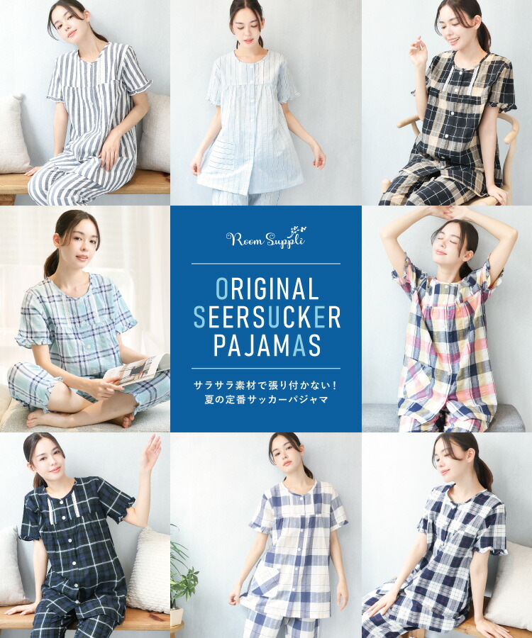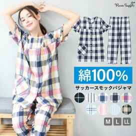 パジャマ レディース 半袖 夏用 夏 前開き 半袖 襟なし 綿100% サッカー素材 母の日 ギフト 上下セット 大人用 ルームウェア 可愛い 入院 産後 部屋着 かわいい 大きいサイズ M L LL サイズ Room suppli ルームサプリ 72502