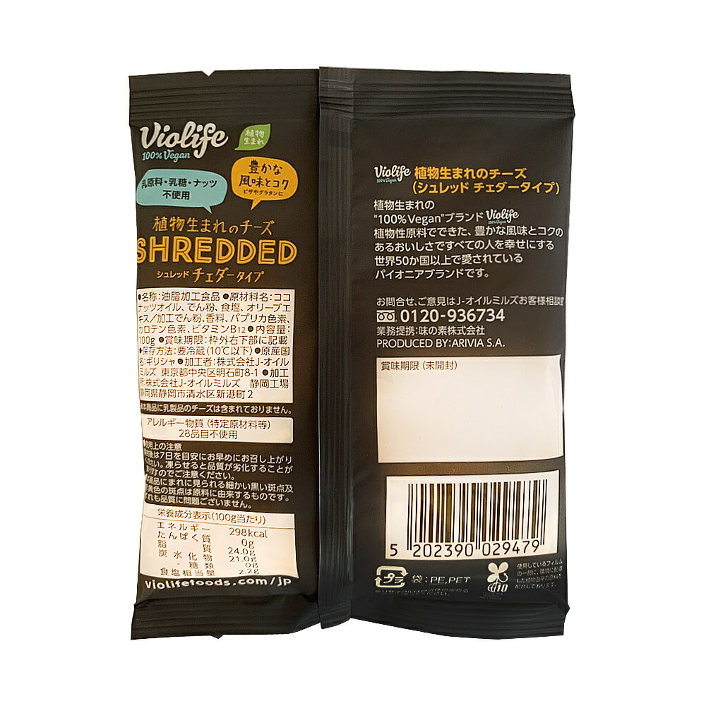 ビオライフ 植物生まれのチーズ シュレッド チェダータイプ 100g 1袋 冷蔵 100%ヴィーガン ベジタリアン トッピング アレンジ ココナッツオイル使用 お試し violife vegan