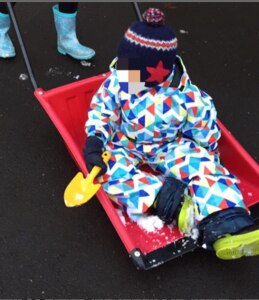 撥水力に惹かれて選んだこのスノーウェア。着てみたらやっぱり最高!撥水力がすごいです!水が生地の上で丸くなってますよ。身長100センチくらいですが、110センチで少し長め。紐を調整したらちょうど良い感じでした!すごく目立つし迷子防止にもおすすめ!(笑) ↑ユックデビューした時の投稿を見つけました。ここから気に入り、サイズアップしてもずっとユックのスキーウェアを購入してます。北海道ブランドというのも応援したい一つの理由。