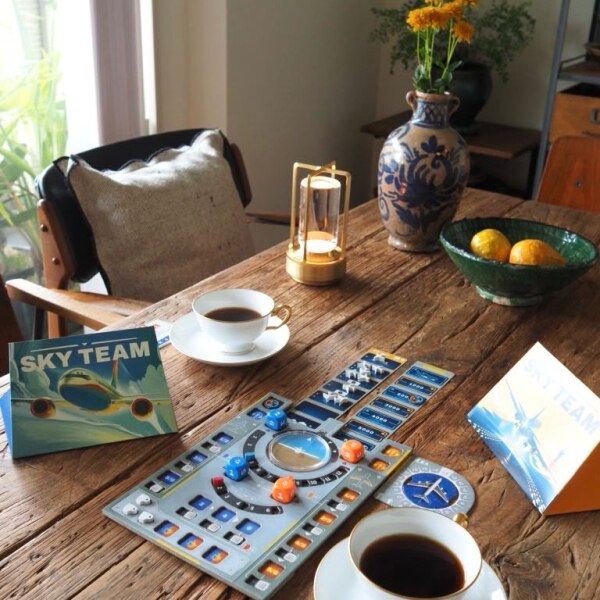 最近夫婦で夢中になっているボードゲーム。世界の空港を旅しているようなワクワク感が味わえます。飛行機やコーヒーカップがのコマの可愛らしさが推しポイント。