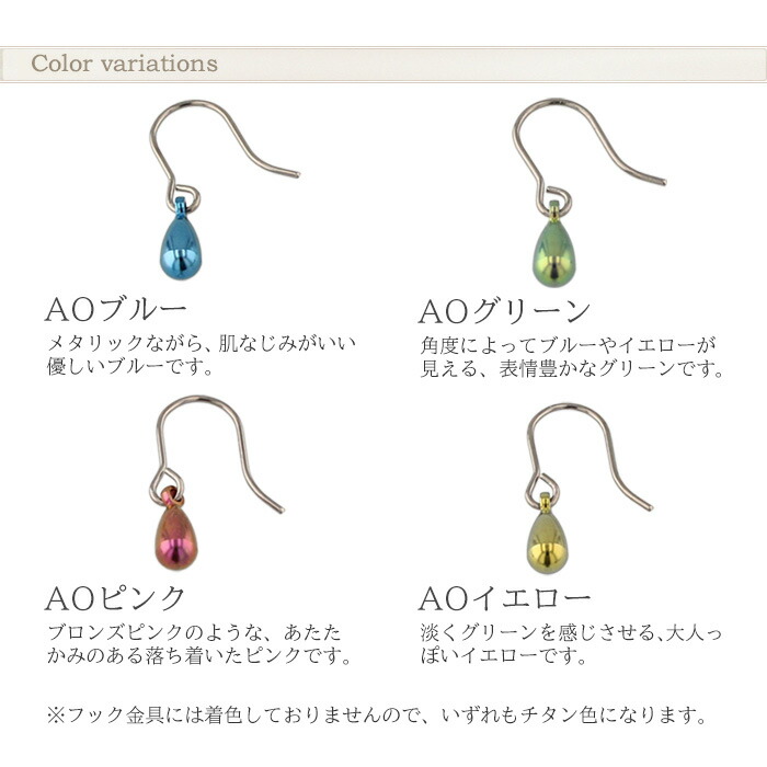 \最大1000円OFFクーポン/ 純チタン ピアス フック 両耳 ミニティア カラー ( チタン 2個 セット セカンドピアス 涙 tears 陽極酸化 ニッケルフリー チャーム つけっぱなし 小ぶり シンプル 揺れる ぶらさがり ブルー ピンク ブルー グリーン) PF105color