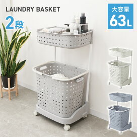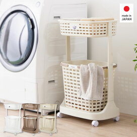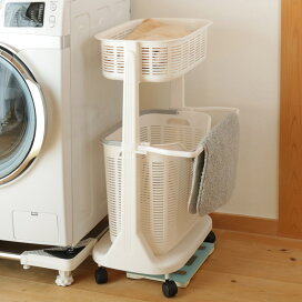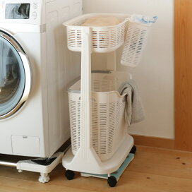 【サンイデア】E-style ランドリー バスケット【2段】一時置き付 キャスター付 洗濯かご 選べる3色