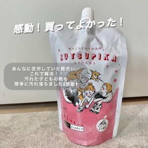 靴洗い大嫌いな私が買ってよかったと本気で思ったクツピカ! 想像以上に簡単に綺麗になりました(感動) 肩は凝るし時間もかかるしとっても手間な靴洗いが このクツピカで解消されちゃいます! 洗浄能力が高く中敷や靴下にも使えちゃいます! 特にソールの汚れは簡単につるんと白くなります🫧 香りもオレンジの香りで個人的にとても好きでした! 保育園で汚れた靴もクツピカでピカピカに✨