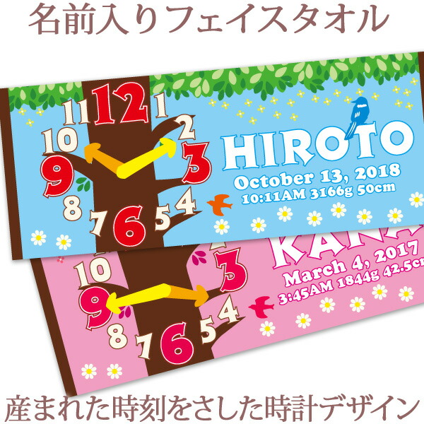 出産祝い 誕生日 名入れ 名前入り 今治製タオル フェイスタオル 33x80cm スポーツタオル 日本製 今治 タオル 名入れ無料 プレゼント 出生時間で作る時計デザイン [ ツリークロック ] 男の子 女の子 誕生日プレゼント 百日祝い お七夜 送料無料 ブランド ココロコ