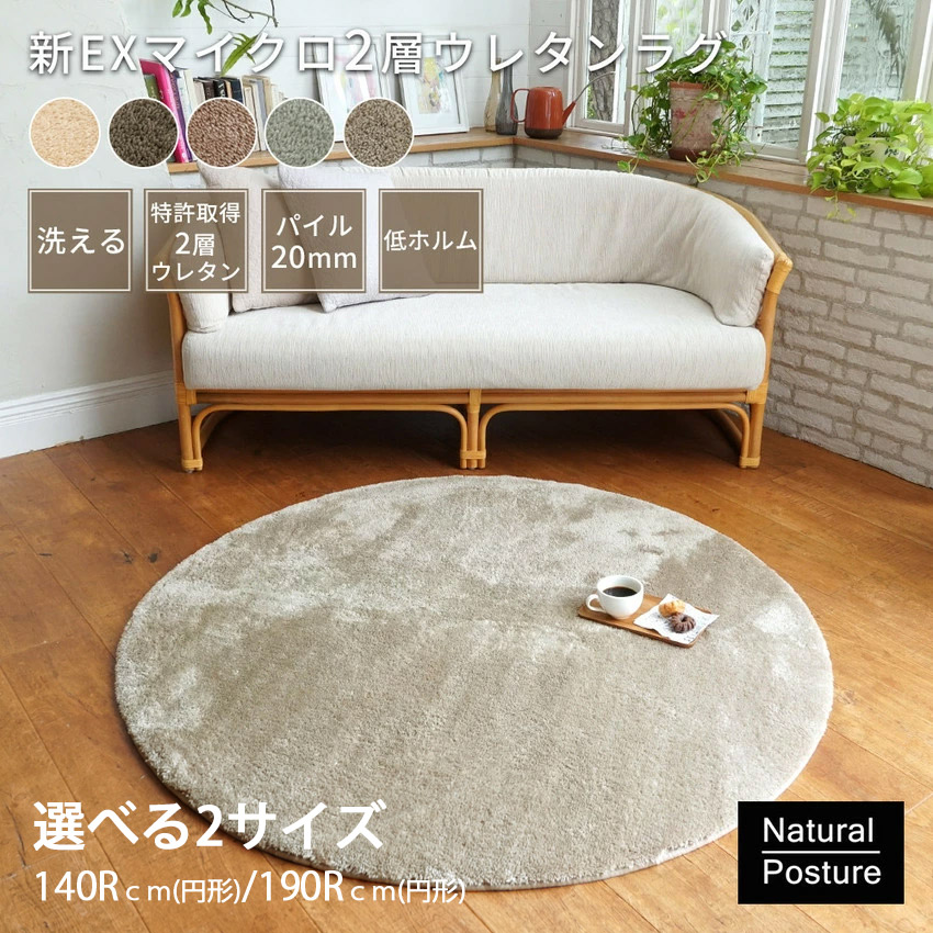 ラグ 円形 140 190 cm 厚手 10mm 2層ウレタン 高反発 洗える 滑り止め おしゃれ 丸 ラグマット カーペット じゅうたん リビングマット 北欧 韓国インテリア グレー 冷房対策 春 夏 neore / 新EXマイクロ2層ウレタンラグ MS-305