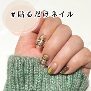 ブラウン系のツイードデザインが、冬っぽくてかわいいネイルシール。 実物を貼ってみたら、想像よりも落ち着いていて大人っぽい仕上がりでした。 ベースがほんのりクリアで透け感があるから、そのまま貼るのはもちろん、ベージュやブラウン系のベースカラーに重ねても雰囲気が変わって良さそう。 合わせる色次第で印象チェンジできるのも、「どうしようかな?」って迷う時間がちょっと楽しくなる。