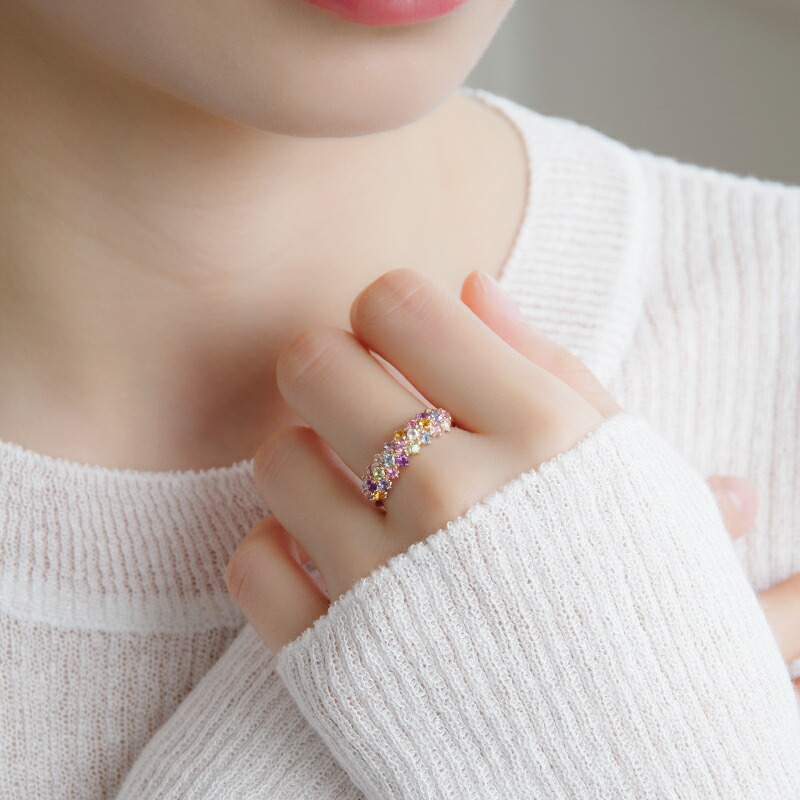 スワロフスキーの上品な輝きにときめく💖重ね着け風リング💠 二つのリングを重ね着けしたようなデザインで、指先に華やかさと上品さをプラス✨ スワロフスキークリスタルがびっしり連なってゴージャスで存在感抜群💗 カジュアルからパーティまでシーンを選ばず使える👏 プラチナ・シャンパンゴールドの2色から選べて、ギフトにもぴったり🎁