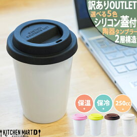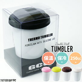 サーモ タンブラー 陶器 二層 白磁 S 250cc【5色から選べる シリコン 蓋付】 白 ホワイト 保温 保冷 蓋付き こぼれにくい オフィス おしゃれ コーヒー ポーセラーツ レンジ対応 食洗器対応