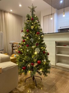 クリスマスツリーといえばこれ!アルザスツリー まるで本物の木みたいにとってもボリュームのある木!! 毎年出してはうっとりしちゃいます🥰 サイズ展開も豊富で、うちは150センチを購入したよ! 本当におすすめ!