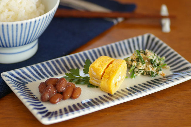 【砥部焼 梅山窯】とくさ柄の布目角皿(6,7寸)