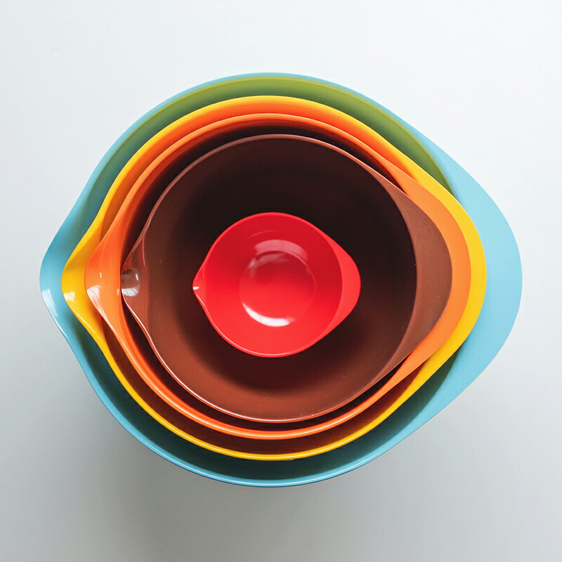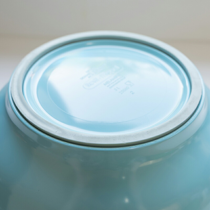 カラフルなボール。フタもあります。シリーズでザルもあるから、あえて別な色にしてます。キッチンが明るくなります。