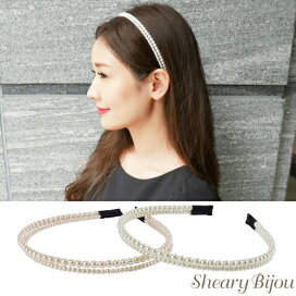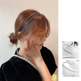 【追跡可能メール便 送料無料】【カチューシャ】ツインシルバーライン(2連タイプ)[結婚式 パーティ ラインストーン クリスタル ツイン スリム シンプル ゴールド シルバー ブラック 髪飾り ]