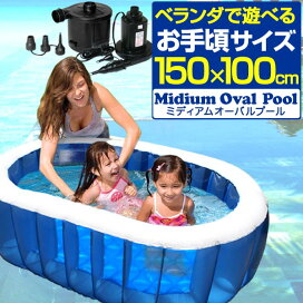【楽天1位】プール ビニールプール 小さい 1.5m×1m 小型 幅148cm×奥行100cm 高さ42cm 小さめ ベランダ 電動ポンプ 水遊び キッズプール ベビープール 子供用プール ファミリープール 家庭用プール FIELDOOR ミディアムオーバルプール 1年保証 ■[送料無料]