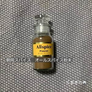 [朝岡スパイス オールスパイス粉末 26g] こちらの朝岡スパイスさんのスパイスで、 はじめてオールスパイスを買いました。 シナモン、クローブ、ナツメグの香りをあわせ持つ便利なスパイス (ハンバーグ、トマト煮込み、カレーやドーナツ等にも合うようです) オールスパイスをもっと使いこなしたいですʕ•ᴥ•ʔ 長谷川あかりさんの酒蒸しハンバーグ、レシピはナツメグを入れるのですが、ナツメグを切らしていて これを入れたら なんだかおいしくできて褒められました🍳 お初につくったので、ナツメグオンリーの味をまだ知らないケド☺️