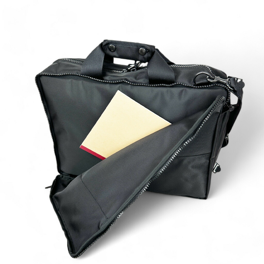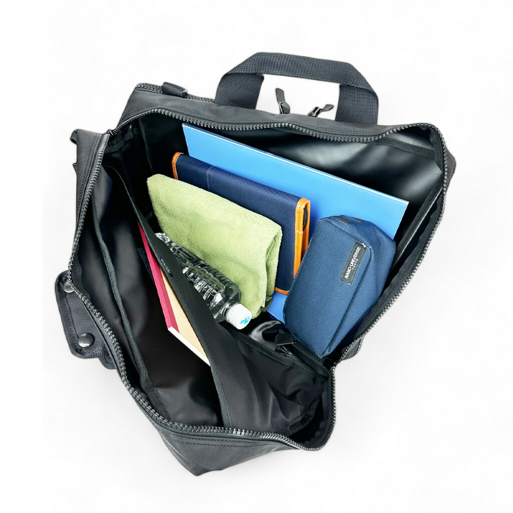 3つのスペースに分かれてるので書類・衣服を分けるのに便利。短い国内出張なら十分な容量な3ウェイバッグです。