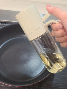 \もっと料理をヘルシーに/ スプレー式だから、必要量をシュッと出せる 油を出しすぎないからカロリーカットができ健康的 液だれもしないので掃除の手間も軽減してくれる