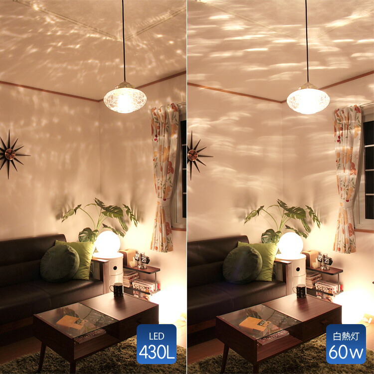 <LED>もろ電球が見えてしまうので普段は白熱灯、夏は暑すぎてこちらのLED。今のところ一番これがすっきりしてるみえるし、光の届き方が白熱灯に近いかも。クリアLED電球の今後の開発に期待してます。