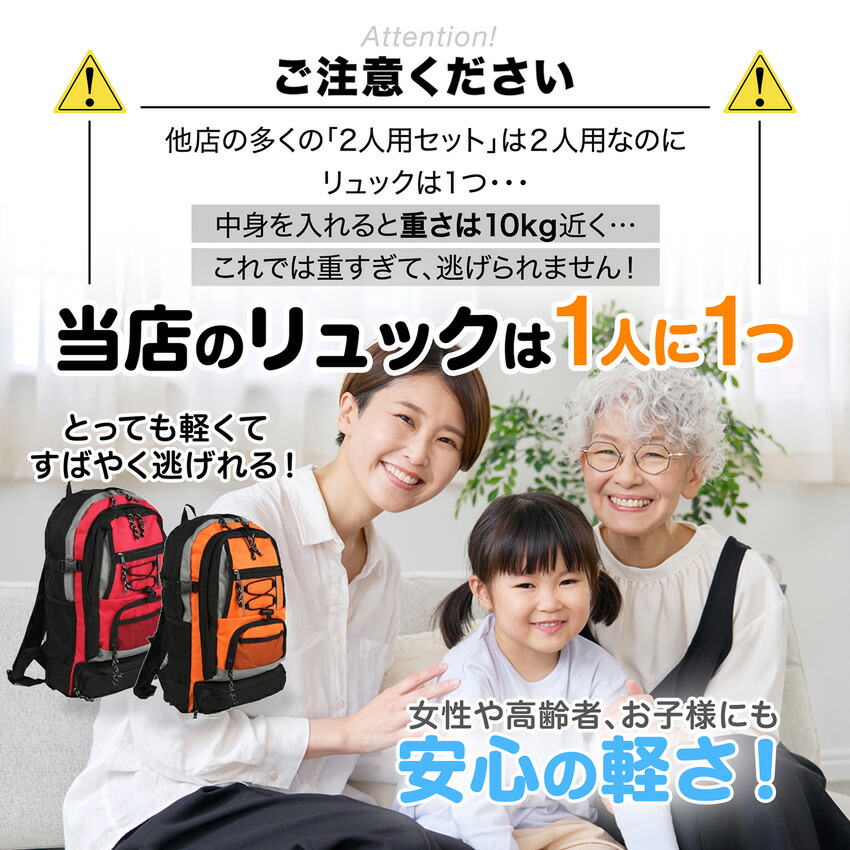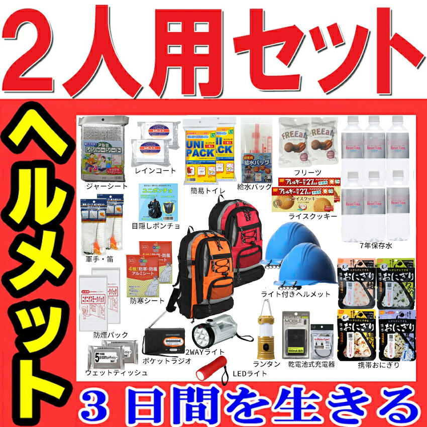 \楽天スーパーセール 3000円クーポン/【ヘルメット付き】防災セット 家族 2人用【防災グッズ セット 非常用持ち出し袋 送料無料 非常持ち出し袋 防災用品 避難セット 防災グッツ 子供用 女性用 災害 グッズ 防災リュック 結婚祝い 避難袋 地震対策 非常袋 非常用品】