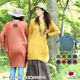 エスニック ワンピース 半袖 ロータス コクーン バルーン 変形 レディース ファッション アジアン ハス 蓮 ゆったり 大きいサイズ 体型カバー チュニック Tシャツ 大人 山ガール マタニティ【メール便可 2cm】【1】