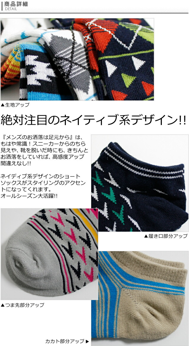 靴下 メンズ くるぶし 10足セット おしゃれ ソックス ネイティブデザイン 綿混素材 オールシーズン対応 くつ下 アウトドア 25-27cmサイズ 送料無料
