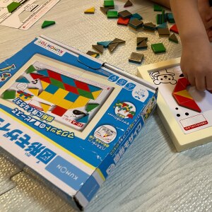 息子が4歳のときにしたプレゼント🎁磁石だから遊びやすい◎三角のピースを回したりして見本と同じになるように考えながら集中して楽しんでいます😊