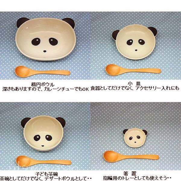 パンダ 陶器4点食器セット 楕円ボウル 茶碗 小皿 箸置 ベビーや子どもに!日本製 美濃焼 ぱんだ 子供食器 かわいい 出産祝い 誕生祝い 入園祝い お食い初め ギフトセット