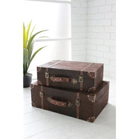 【送料無料】ウッデン・トランクボックス2点セット (BO-01) (ディスプレイ雑貨 レトロ アンティーク 雑貨 収納ボックス BOX 内装 ブラウン小物 結婚式 ウェディング小物 革 レザー 店舗什器 クラシック 宝箱 ふた付き 大きいトランク 蓋つき木箱 インテリア)