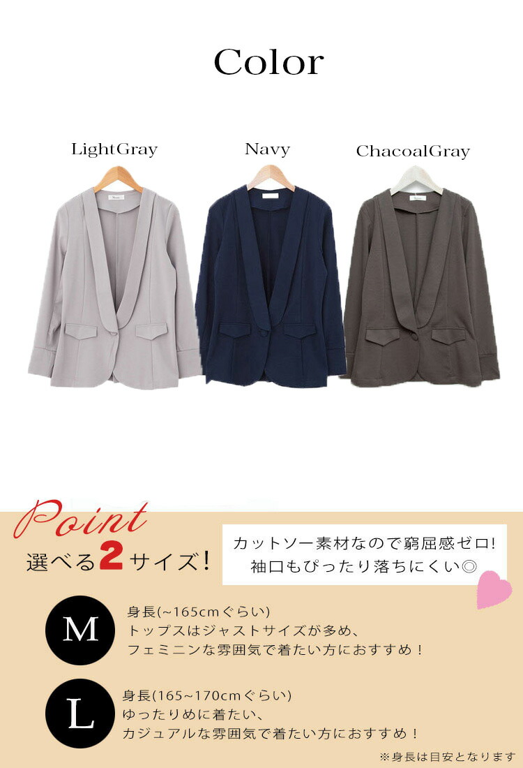 セール カットテーラードジャケット (Mネイビー) すっきりシルエット ジャケットM L レディース 春アウター 入学式 入園式 謝恩会 卒園式 卒業式 フォーマル ジャケット テーラード Sheson カット 裏地なしタイプ 女性 トップス