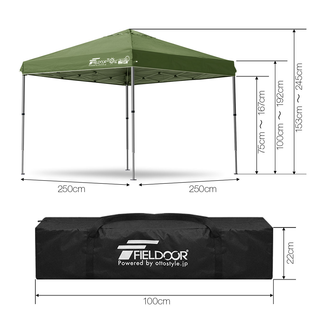【楽天1位】遮光/遮熱モデル追加!FIELDOOR ワンタッチタープテント 2.5m×2.5m 軽量 アルミ テント タープ 250 ワンタッチテント ワンタッチタープ ワンタッチ 大型 簡単 UVカット 撥水 日よけ プール イベント アウトドア キャンプ BBQ 1年保証 ■[送料無料]