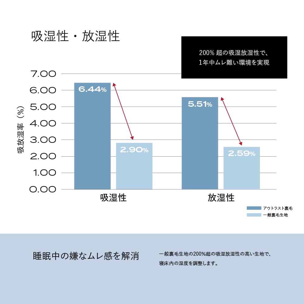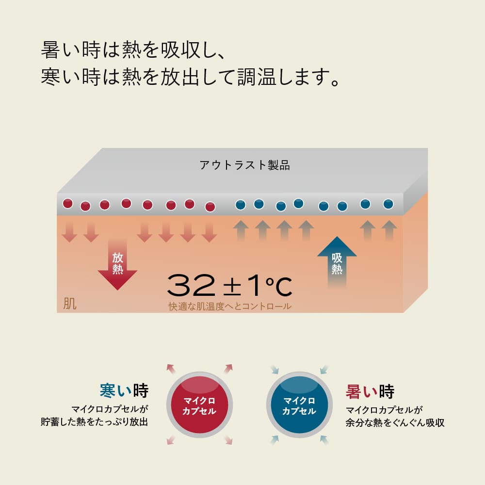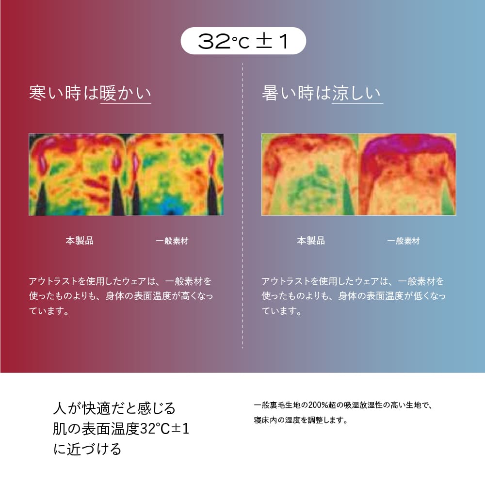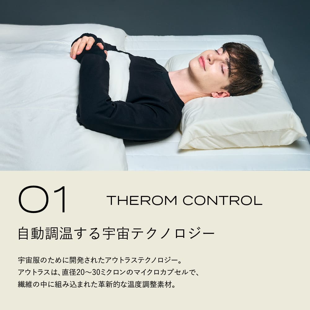 宇宙服技術を採用した調温素材が使われており、体の表面を人が快適と感じる温度に近づけ、良質な睡眠へと導きます。