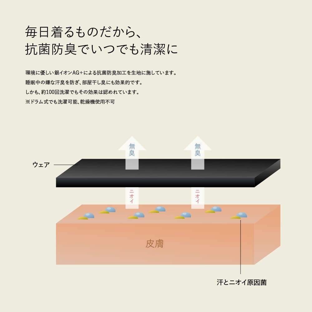 まず、吸湿放湿性に優れた生地で蒸れずにサラサラ。