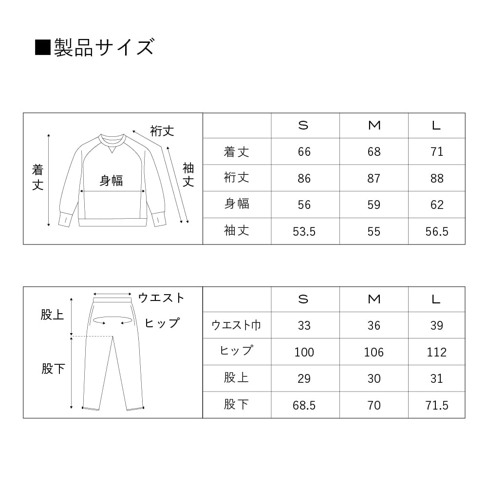 こちらのスリープウエア、一見ベーシックなスウェット上下ですが、