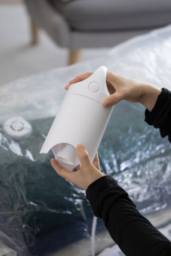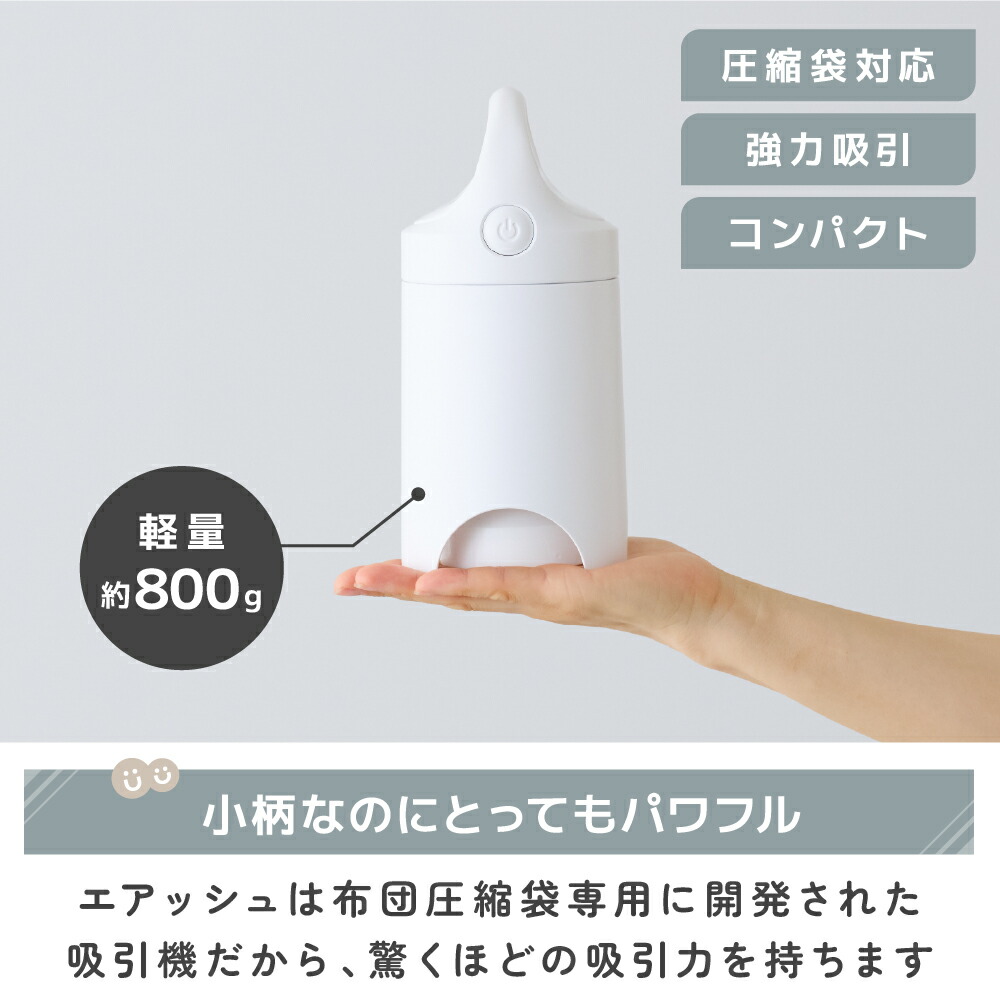 「エアッシュ」は、布団圧縮袋専用に開発された吸引機。