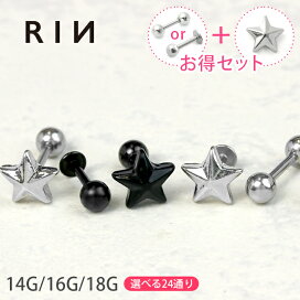 【今だけ★399円】ボディピアス 14G 16G 18G 軟骨ピアス 星 スター 金属アレルギー対応 金属アレルギー つけっぱなし サージカルステンレス セカンドピアス おすすめ シルバー ゴールド ピンクゴールド ブラック メンズ レディース ストレートバーベル ネジ式 片耳用