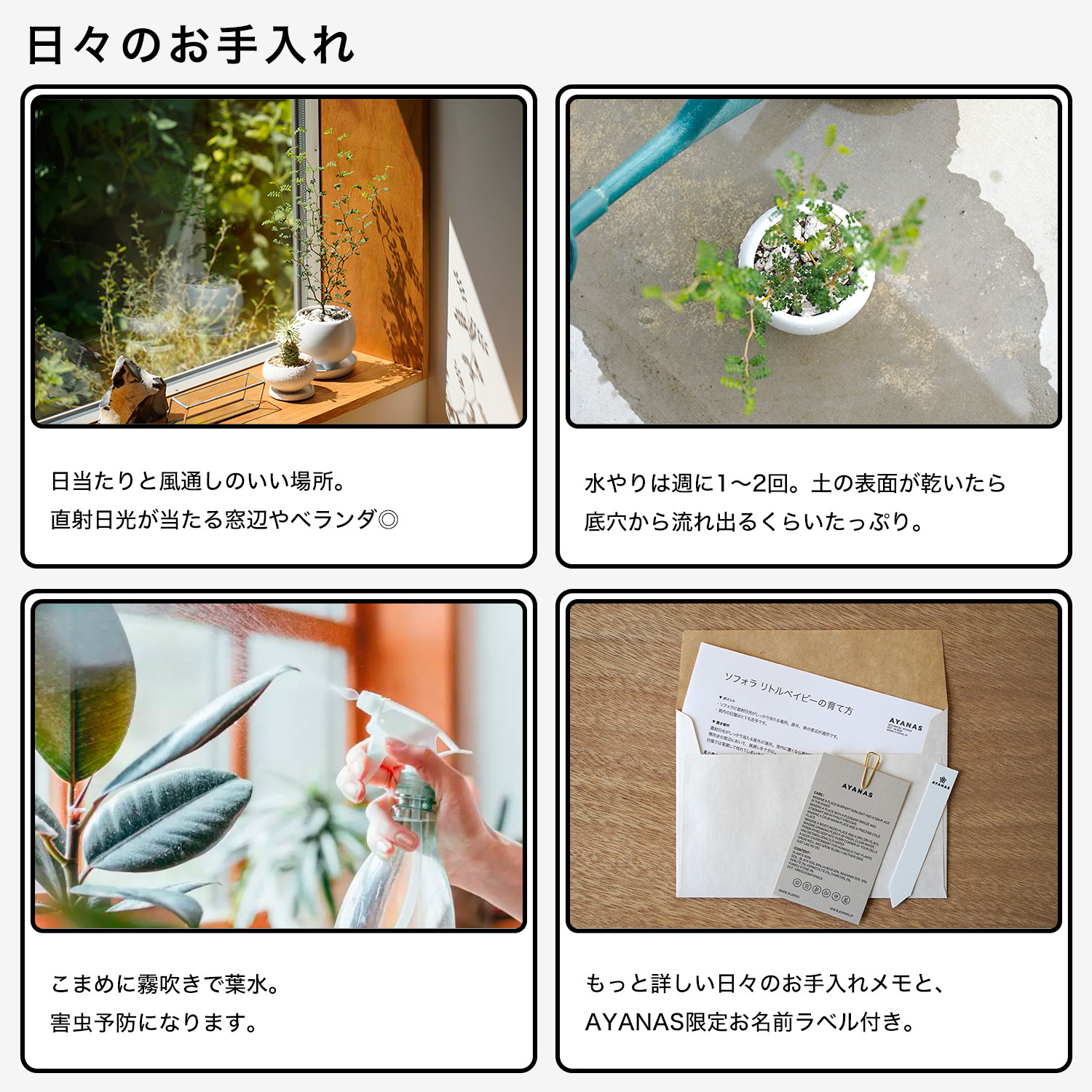 【楽天1位】ソフォラ リトルベイビー 観葉植物 おしゃれ 小さい お祝い ミニ ミニサイズ プレゼント ギフト 誕生日 白 小型 メッセージカード ラッピング 土 人気 簡単 可愛い かわいい 教科書 インテリア グリーン 室内 リビング ベランダ